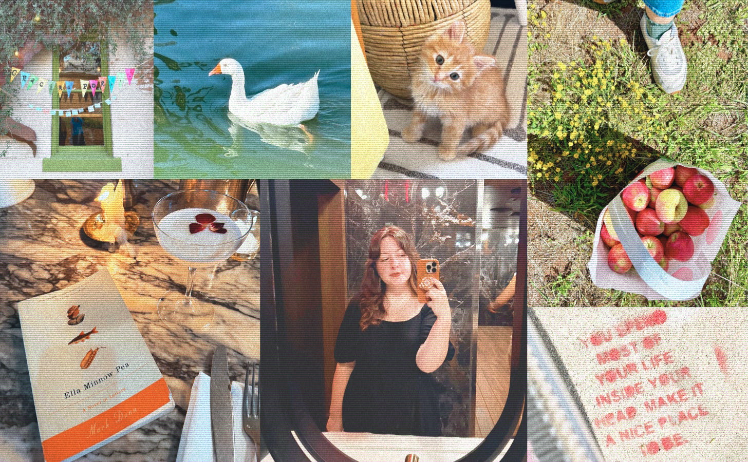 But if I don’t break this pattern, another year will pass with little conscious memory to accompany it. While scrolling through my camera roll for photos to add to the collage above, I came across moments I’d completely forgotten about: one of the most incredible dinners of my life in upstate New York; fostering two rambunctious orange kittens; surprise fireworks while my friends and I were at the pool. If you had asked me pre-scroll what my 2025 was like, I probably would have mentioned my authorial debut or the part-time job I desperately wanted, got, and then left six months later. The “big” stuff.